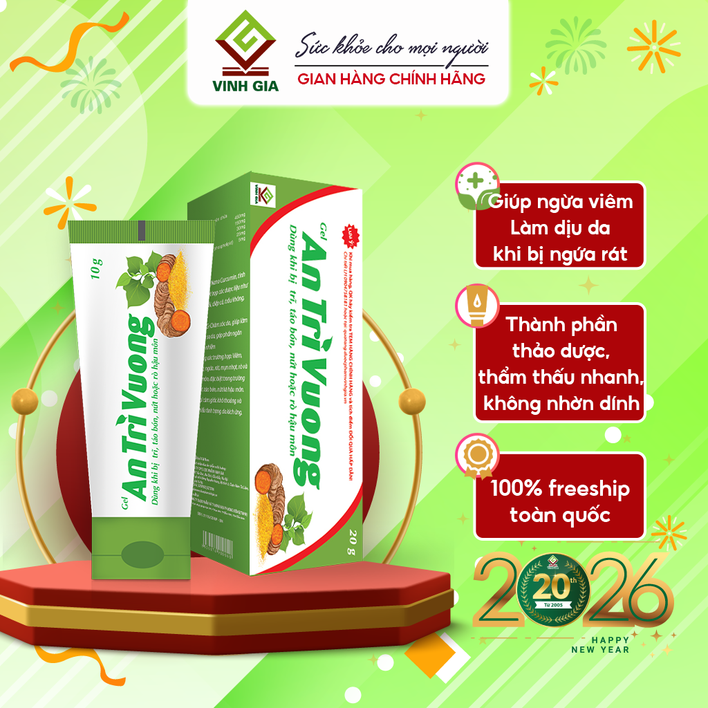 Gel An Trĩ Vương Vinh Gia Giúp Hỗ trợ Chăm Sóc Làm Mát, Dịu Da Dùng Khi Bị Trĩ, Táo Bón, Nứt Kẽ Hậu Môn Tuýp 20g