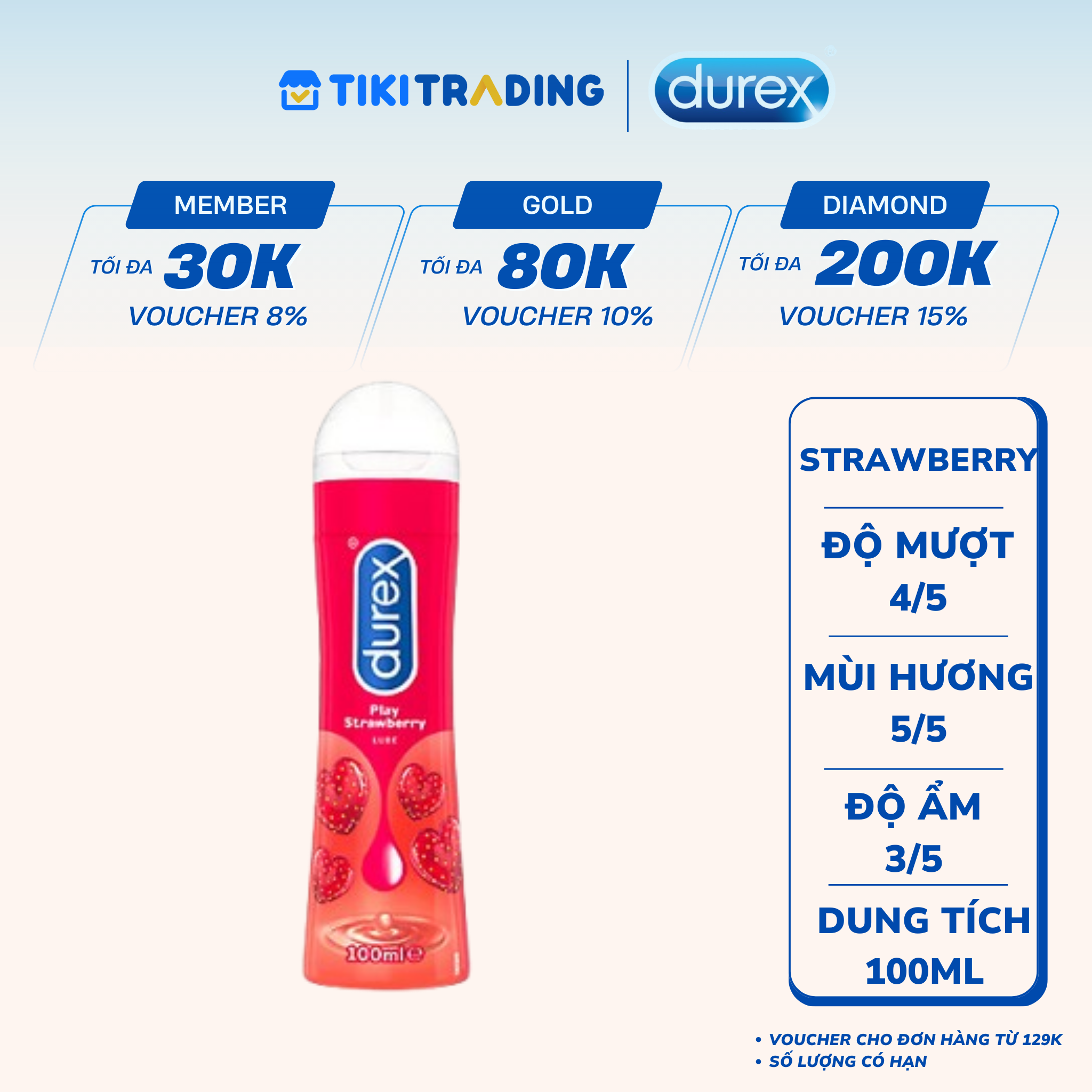 Gel Bôi Trơn Durex Play Strawberry giúp cuộc yêu trở nên mặn mà và nồng nhiệt hơn. Gel giúp bôi trơn, tăng độ ẩm cho âm đạo, mang lại cảm giác mịn màng, êm ái, thoải mái cho các nàng.