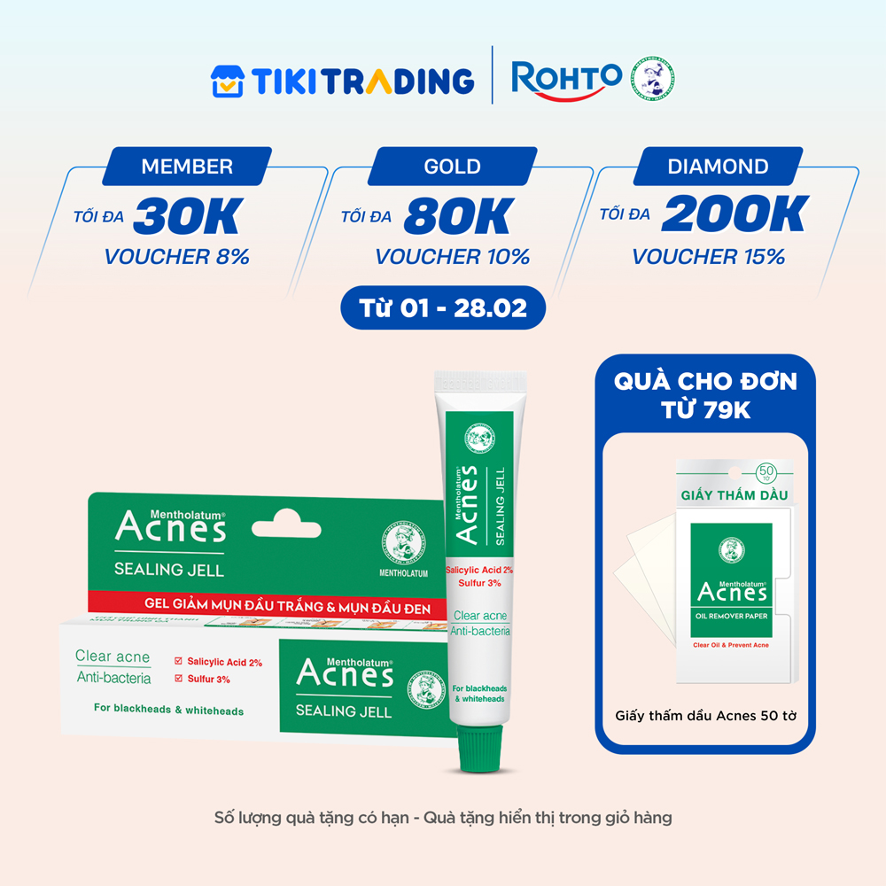 Gel chấm mụn đầu trắng và đầu đen Acnes Sealing Jell là gel chấm mụn đến từ thương hiệu Acnes, được tập đoàn Rohto-Mentholatum nghiên cứu và phát triển phù hợp cho mụn đầu trắng và mụn đầu đen. Công thức kết hợp các hoạt chất Salicylic Acid, Sulfur và Niacinamide, hiệu quả trong việc làm khô nhân mụn, giúp nhân mụn thoát ra dễ dàng, hỗ trợ phục hồi vùng da mụn, ngăn ngừa hình thành mụn mới và hạn chế hình thành sẹo - thâm sau mụn.