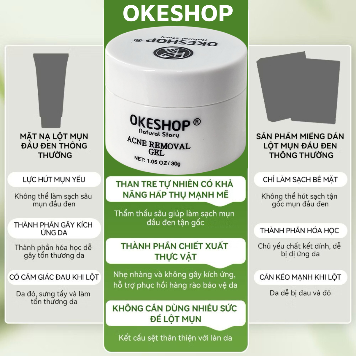 Thông số kỹ thuật Gel Lột Mụn Nha Đam OKESHOP 30ml - Giải Pháp Loại Bỏ Mụn Đầu Đen - Mụn Cám - Bạ Nhờn - Làm Sạch Sâu Và Thu Nhỏ Lỗ Chân Lông