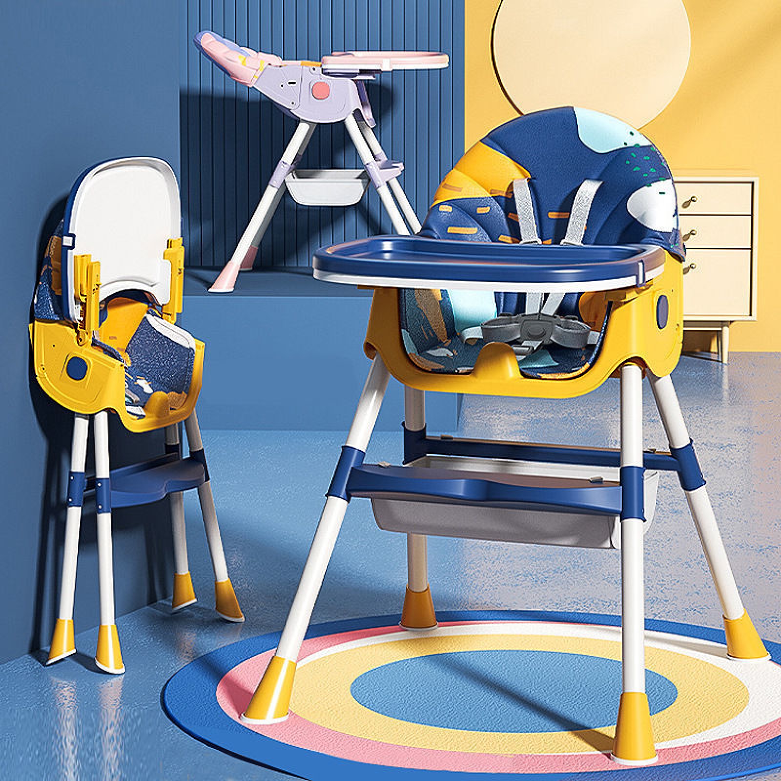 Ghế ăn dặm gấp gọn cao cấp Umoo mới nhất 2021, có bánh xe và điều chỉnh được độ cao