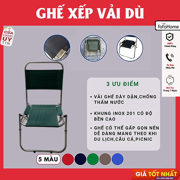 Ghế câu cá địa hình vải dù khung inox gấp gọn để du lịch dã ngoại cắm trại camping ngoài trời , cafe trà chanh Ghế Vải Dù Khung Inox Gấp Gọn cho quán Trà Chanh , Cafe , Câu Cá