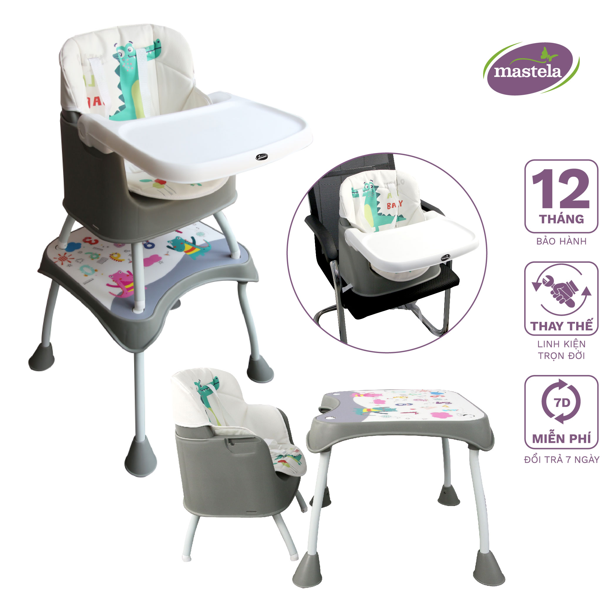 Chiếc ghế ăn dặm đóng một vai trò rất quan trọng trong giai đoạn tập ăn của bé. Mẹ nào cũng biết rằng khi bé có thể tự ngồi vững thì đó là thời điểm vàng để bé bắt đầu tập ăn, khi đó cũng là lúc mẹ nên mua cho bé một chiếc ghế tập ăn của riêng mình. 1016 - Ghế ăn đa năng 3 trong 1 Mastela 1016: ghế ăn thấp, ghế ăn cao, bàn ghế ngồi vẽ cho bésẽ đồng hành cùng mẹ và bé trong quá trình ăn dặm.