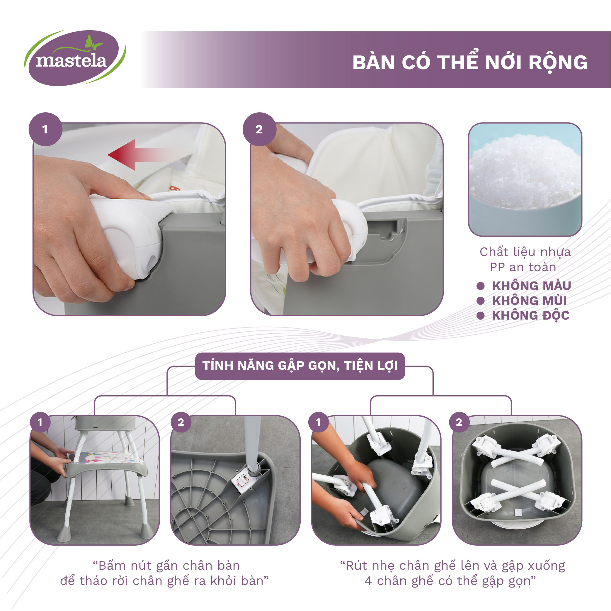 Thông số kỹ thuật Ghế ăn dặm đa năng 3 in 1 cho bé Mastela 1016 - ghế ăn cao, ghế ăn thấp, bàn ghế tập vẽ thông minh cho bé từ 6 tháng
