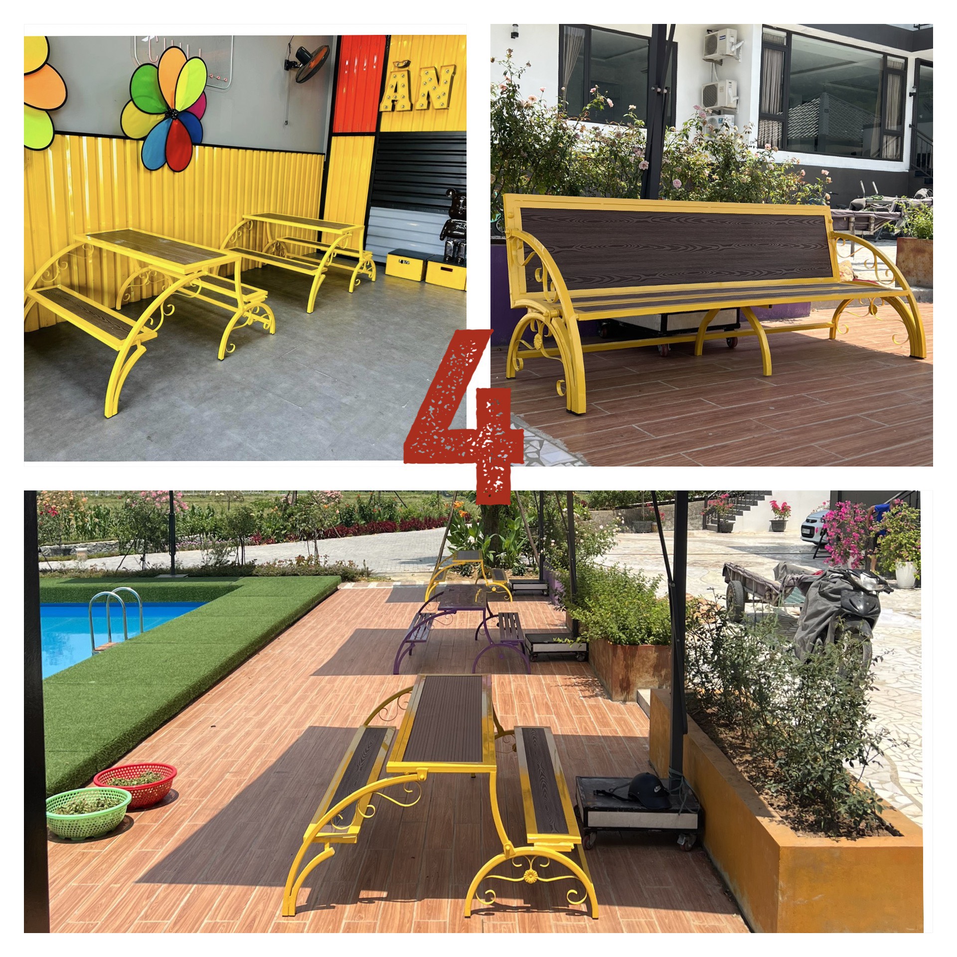 - Mẫu mặt nhựa : mặt bàn là tấm nhựa vân gỗ composite chuyên sử dụng ngoài trời có độ bền cao