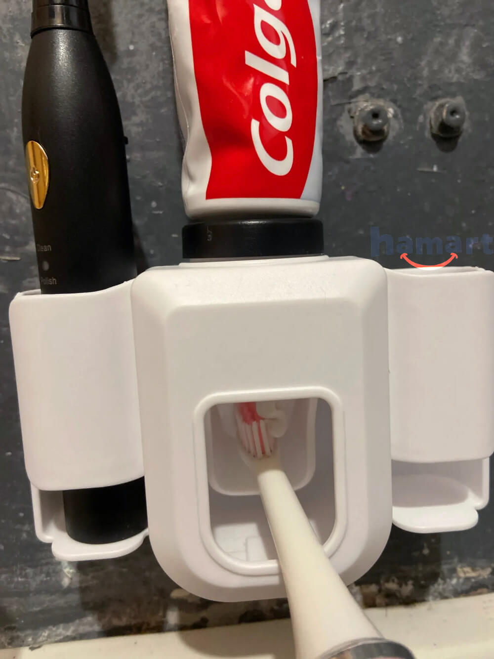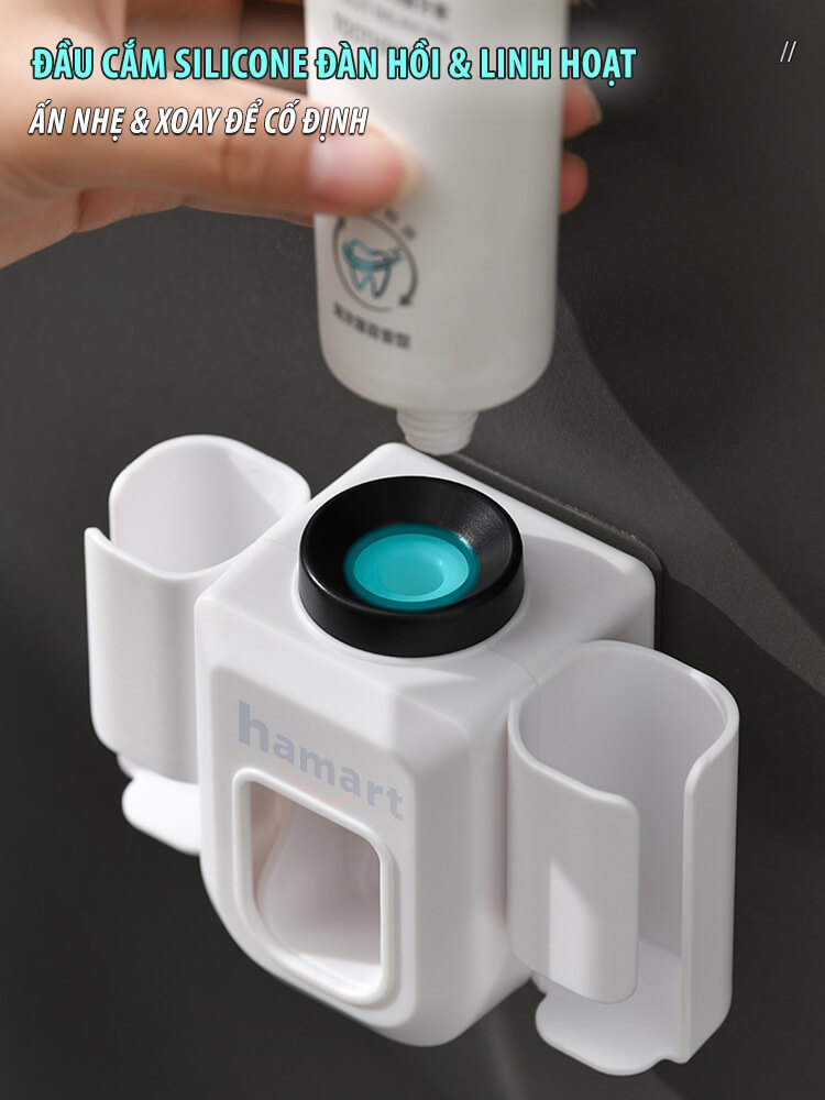 - Kệ nhả kem giúp bạn bơm ra lượng kem đánh răng phù hợp với từng thành viên trong gia đình