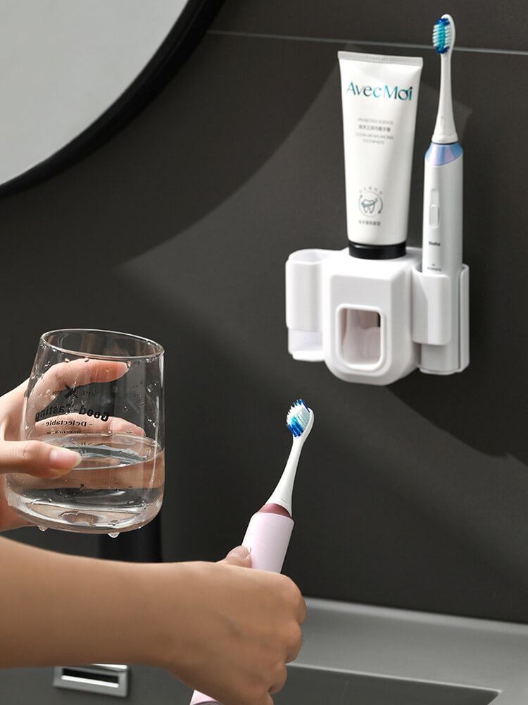 - Thiết kế tối giản & thông minh, kệ nhả kem đánh răng đồng thời để được 2 bàn chải điện rất tiện lợi