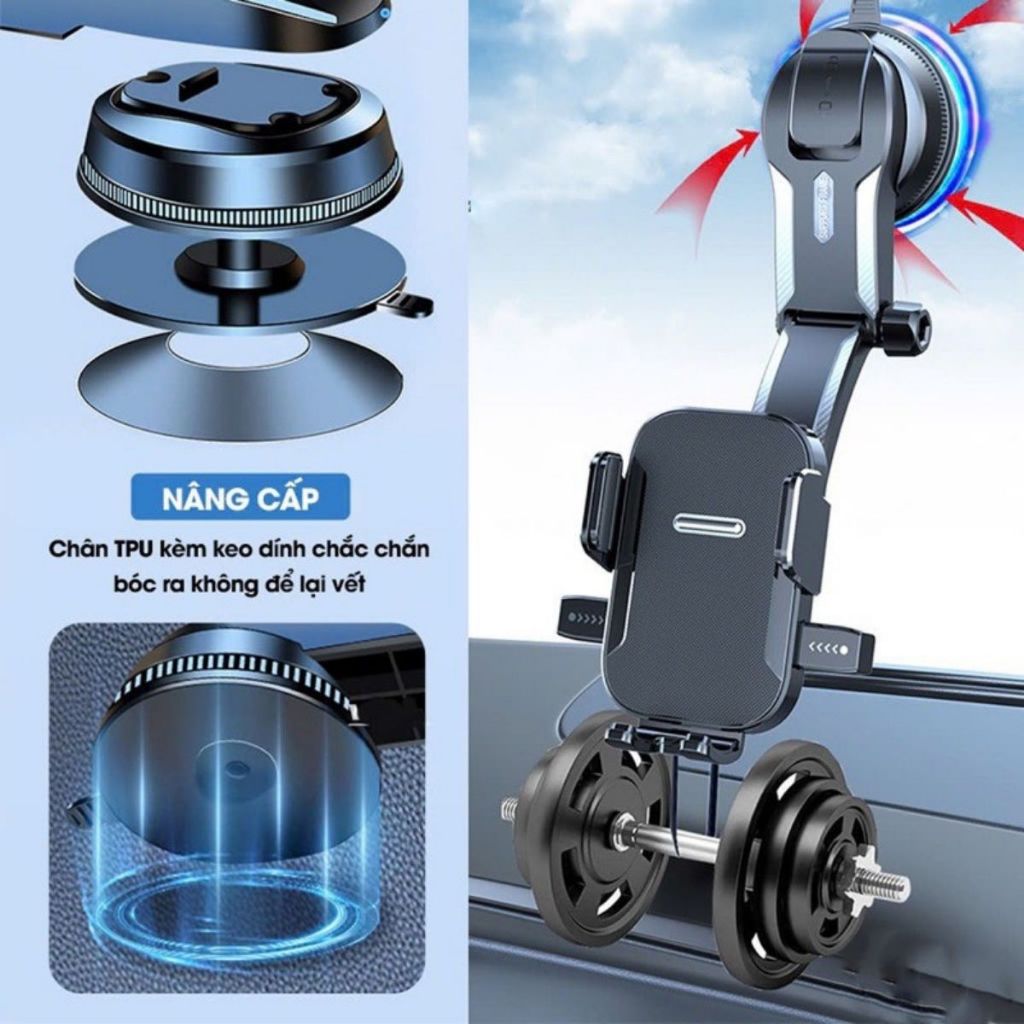 - Đế hút keo nano chắc chắn, cố định điện thoại trên mọi nẻo đường