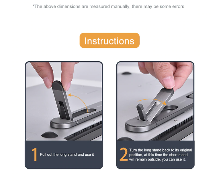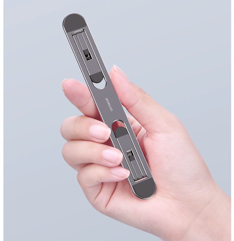 - Thiết kế siêu mỏng, gọn, nhẹ, dán luôn ở mặt đáy của laptop, khi sử dụng chỉ cần gạt chân đế xuống. Khi không dùng nữa chỉ cần gạt chân đế lên, vô cùng tiện lợi