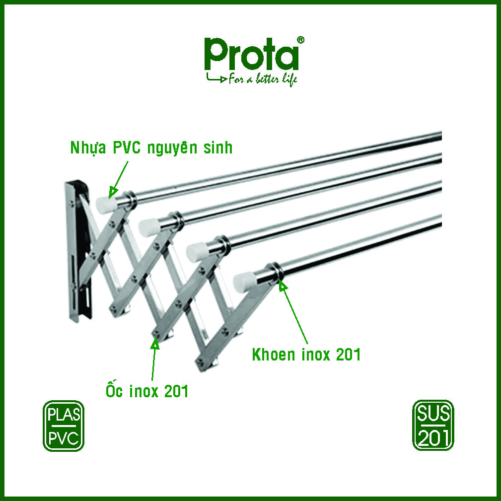 Thông số kỹ thuật Giá Phơi Đồ Inox Co Giãn Thông Minh Prota - PT-945 - 1m