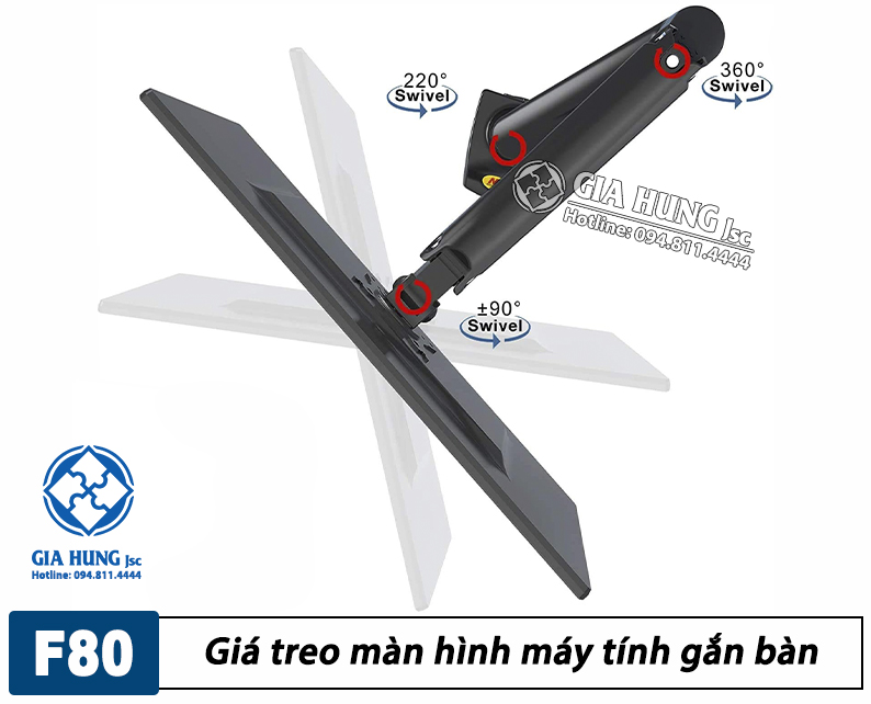 * Giá đỡ màn hình F80 chuyển động linh hoạt với tất cả các điều chỉnh hướng dễ dàng mà không cần sử dụng các công cụ hỗ trợ