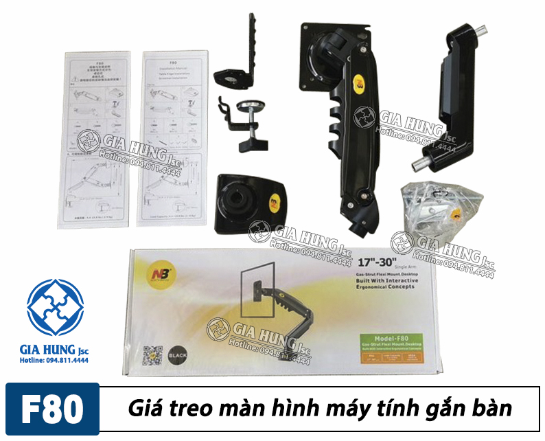 Thông số kỹ thuật Giá treo màn hình máy tính nhập khẩu 1 tay NB F80 cho màn hình 17-27inch
