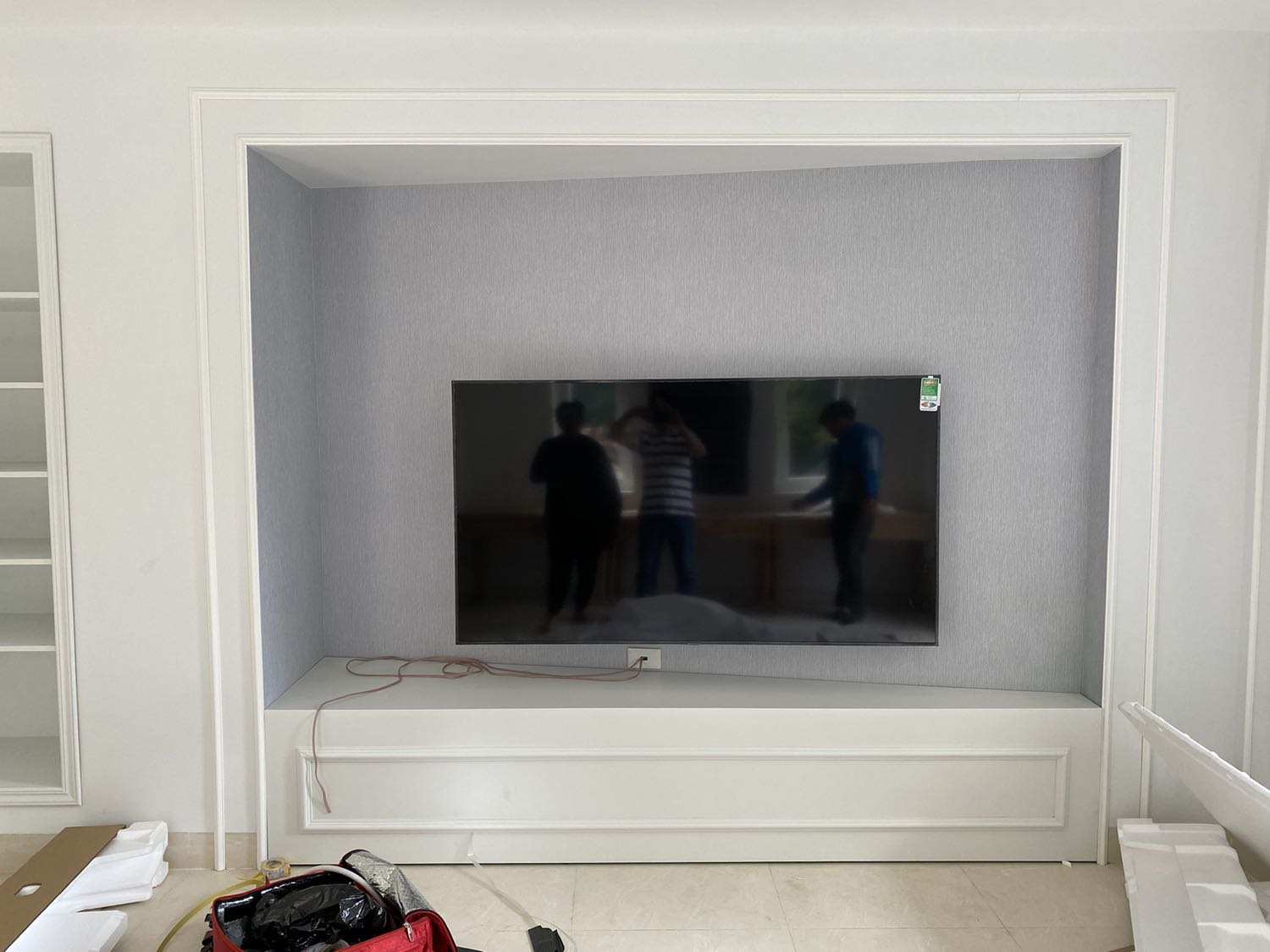 Lưu ý: Mảng tường để lắp tivi phải bằng phẳng, khô ráo, khả năng chịu lực tốt (đảm bảo chịu được trọng lượng của khung treo và tivi).