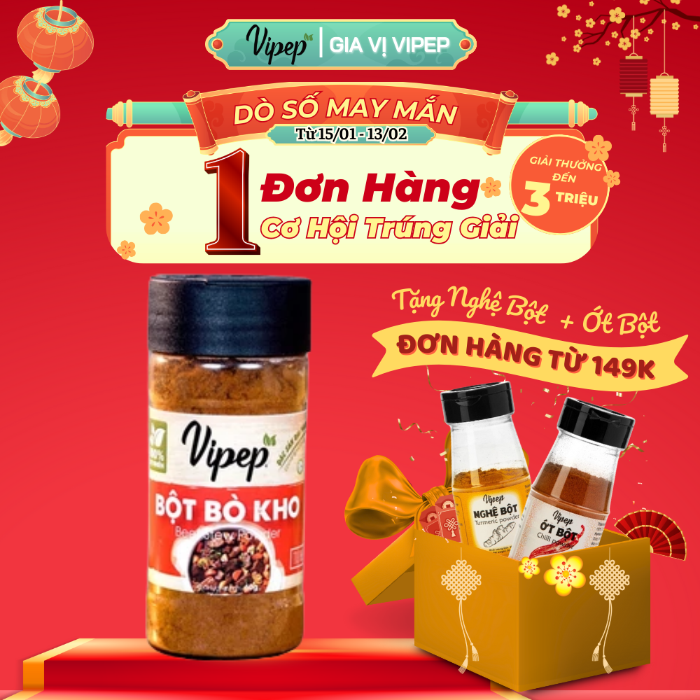 Tên sản phẩm: Gia Vị Bột Bò Kho Tự Nhiên Vipep Hũ Nhựa Tròn 60g