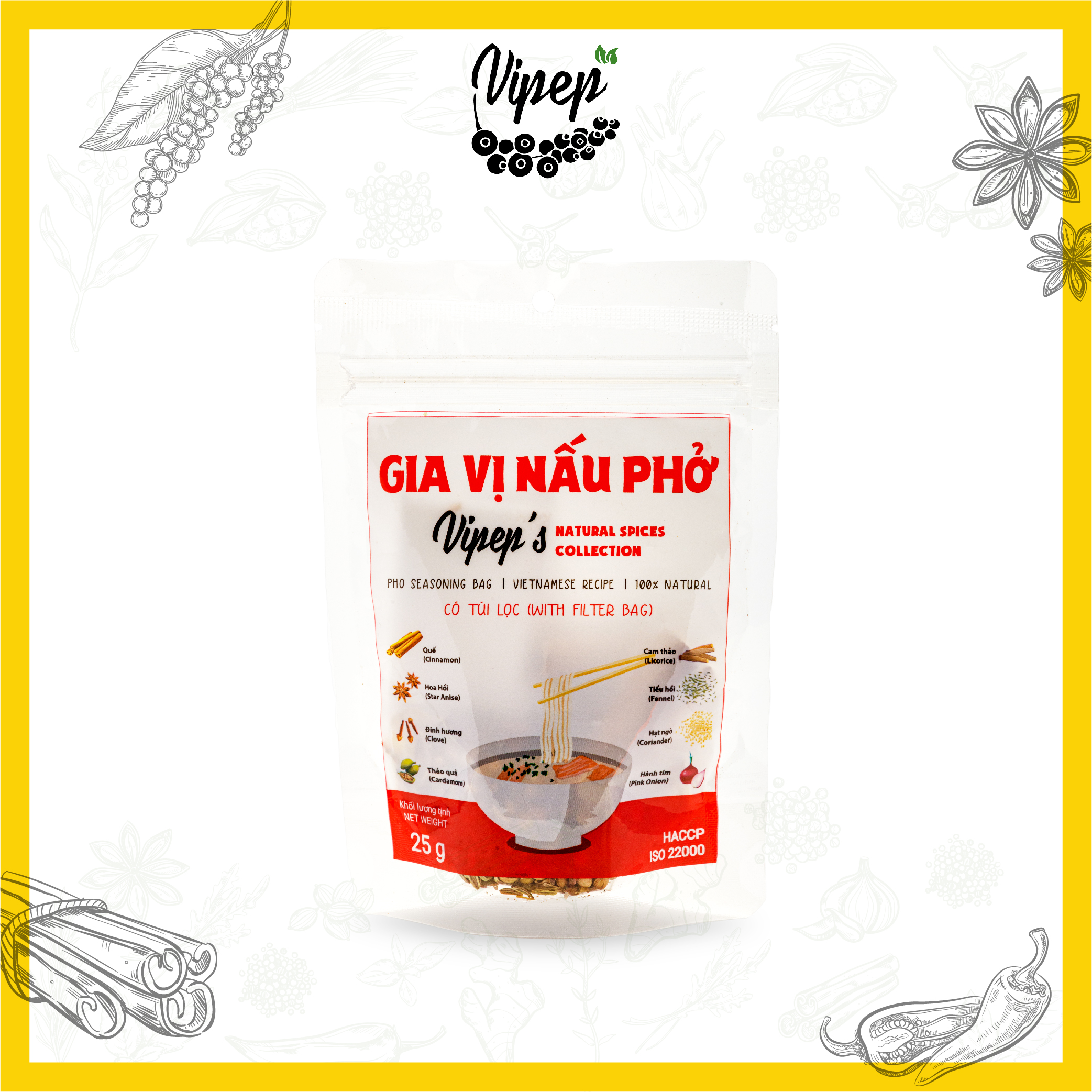 Tên sản phẩm: Gia Vị Nấu Phở Bò Tự Nhiên Vipep 25g