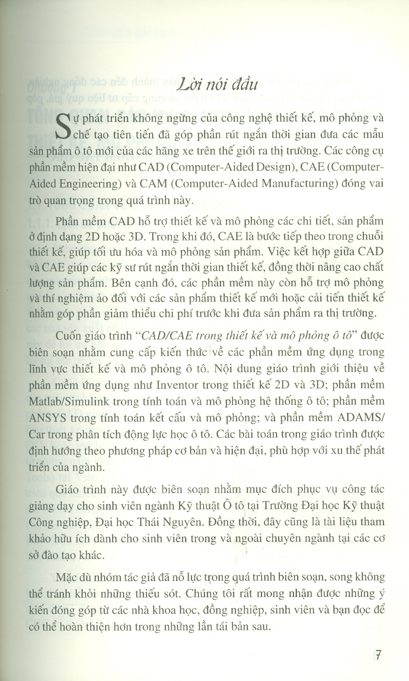 Thông số kỹ thuật Giáo Trình CAD/CAE Trong Tính Toán Thiết Kế Và Mô Phỏng Ô Tô