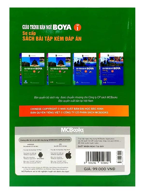 Giáo Trình Hán Ngữ Boya Sơ Cấp I - Sách Bài Tập Kèm Đáp Án (Dùng App MCBooks)