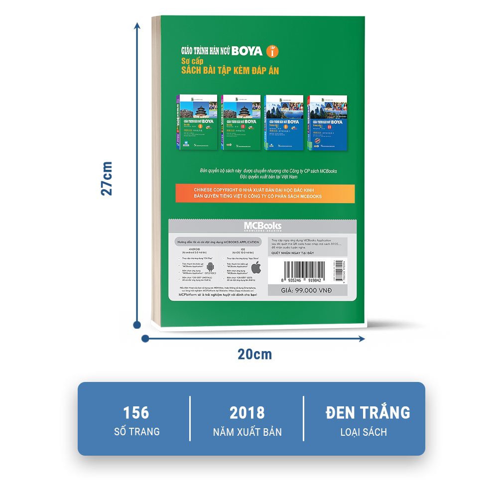 Thông số kỹ thuật Giáo Trình Hán Ngữ Boya Sơ Cấp I - Sách Bài Tập Kèm Đáp Án (Dùng App MCBooks)