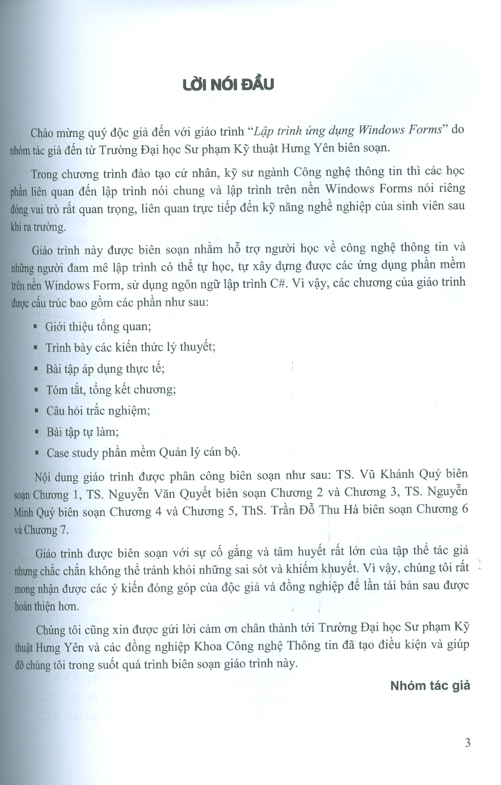 Thông số kỹ thuật Giáo trình Lập Trình Ứng Dụng Windows Forms - TS. Nguyễn Minh Quý (Chủ biên)