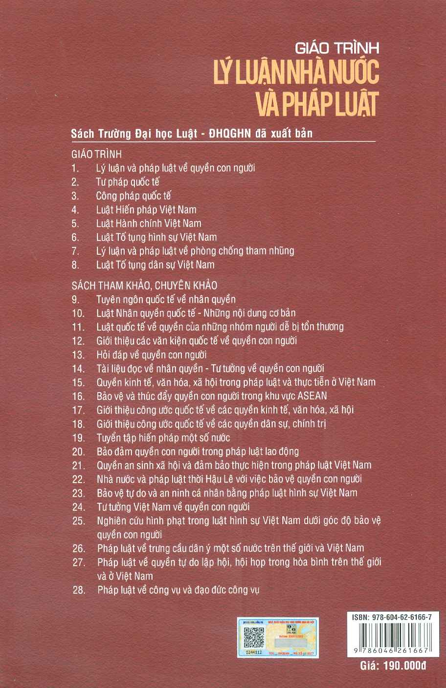Thông số kỹ thuật Giáo Trình Lý Luận Nhà Nước Và Pháp Luật - GS.TS. Hoàng Thị Kim Quế - Tái bản - (bìa mềm)