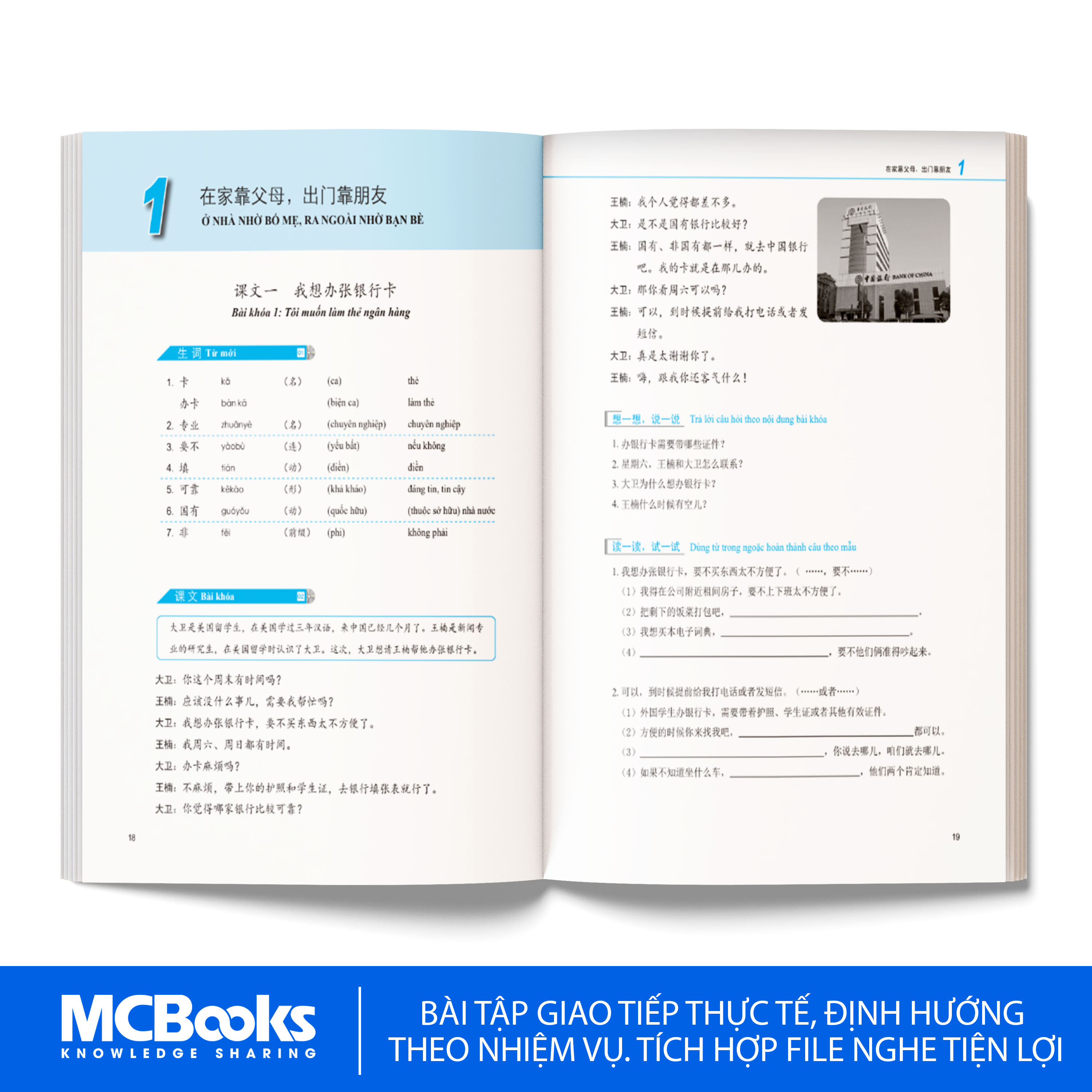 - Từ vựng: Gồm 3 phần chia theo nội dung của bài khóa. Mỗi bài học sẽ bắt đầu bằng những từ mới, từ vựng cần thiết cho bài khóa đó sẽ bao gồm chữ Hán, phiên âm pinyin, nghĩa Hán Việt và nghĩa tiếng Việt cung cấp cho bạn học đủ về mặt chữ, cách phát âm và nghĩa của từ vựng.