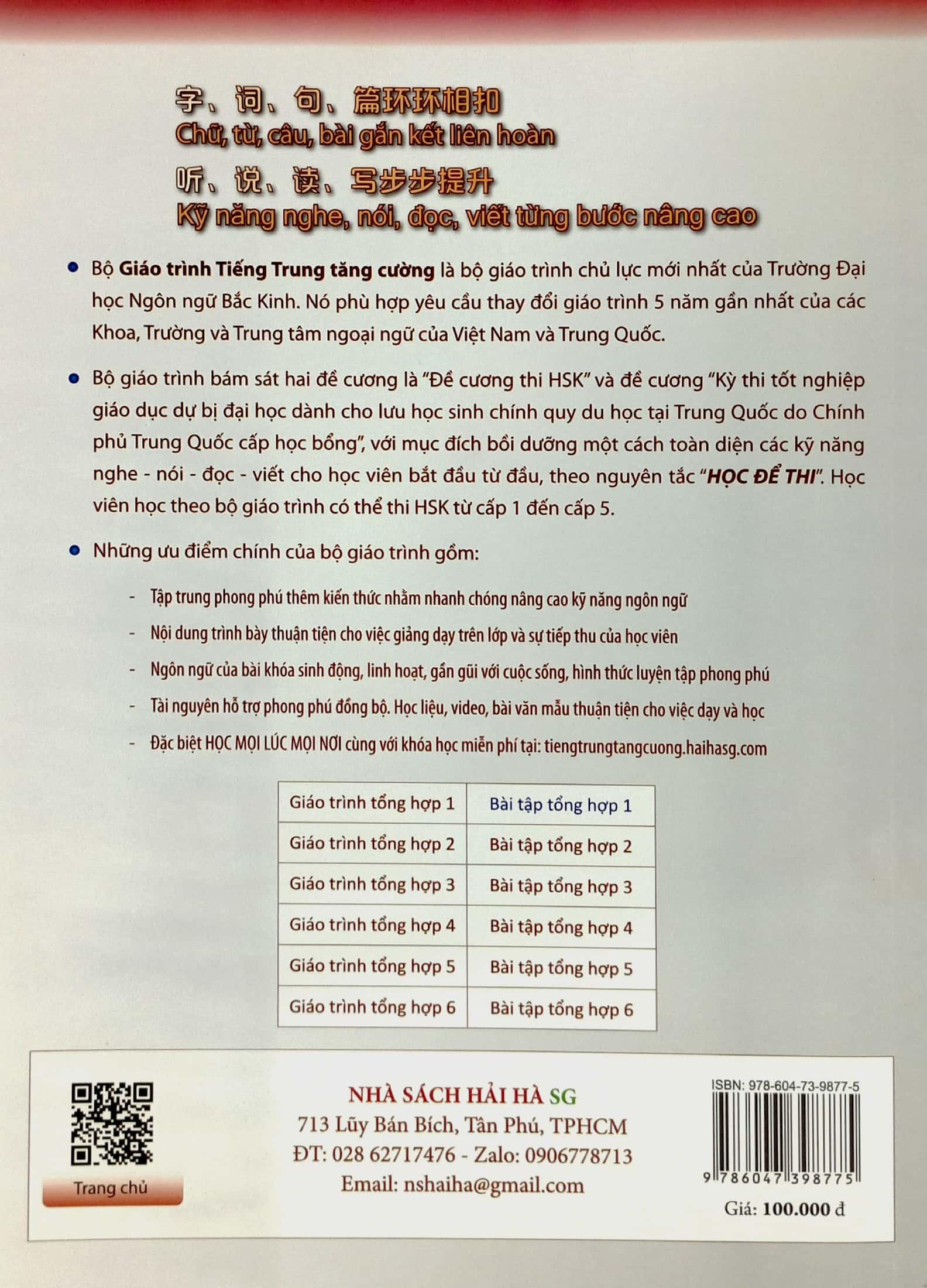 Bộ Giáo trình Tiếng Trung tăng cường là bộ giáo trình chủ lực mới nhất của Trường Đại học Ngôn ngữ Bắc Kinh. Nó phù hợp yêu cầu thay đổi giáo trình 5 năm gần nhất của các Khoa, Trường và Trung tâm ngoại ngữ của Việt Nam và Trung Quốc.