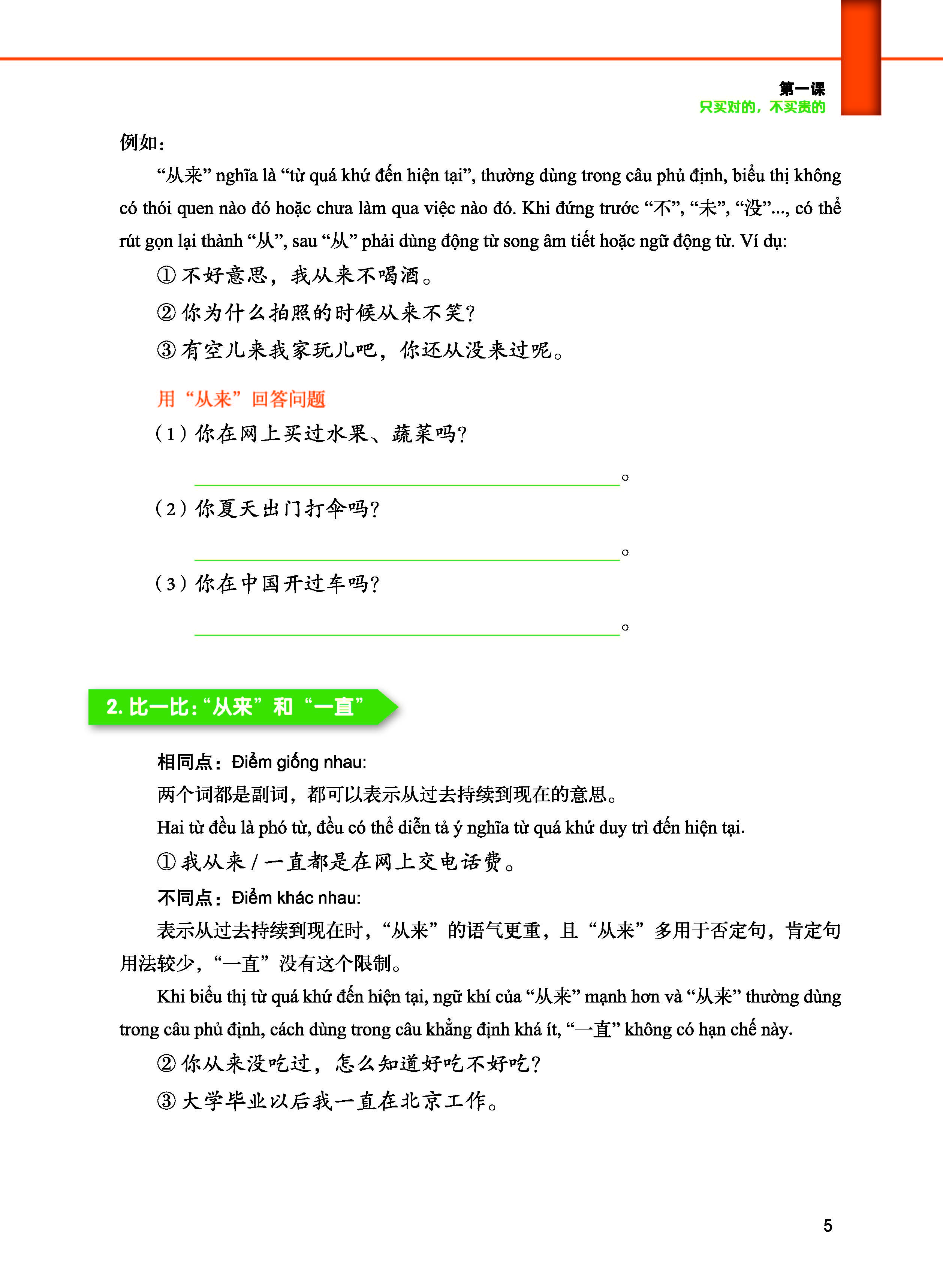 - Nội dung giáo trình bám sát thực tiễn xã hội hiện đại. Người học có thể học nhiều từ vựng, mẫu câu liên quan đến các chủ đề của xã hội như mạng xã hội Wechat, mua bán trực tuyến; thanh toán di động; Bảo vệ môi trường