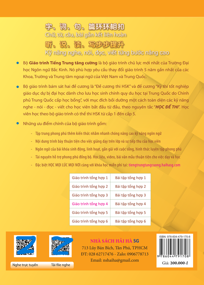 Thông số kỹ thuật Giáo Trình Tiếng Trung Tăng Cường (Khổ Lớn - In Màu) - Giáo Trình Tổng Hợp 4 (Học Kèm Khóa Học Trực Tuyến Miễn Phí, Tặng File Nghe MP3)