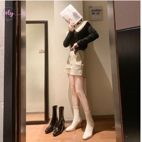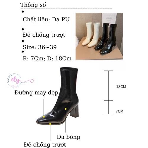 Thông số kỹ thuật Giày Bốt Nữ Da Bóng Trắng Đen Ôm Chân Đẹp Gót 7 Phân Cổ cao Mũi Nhọn Không Có Khóa