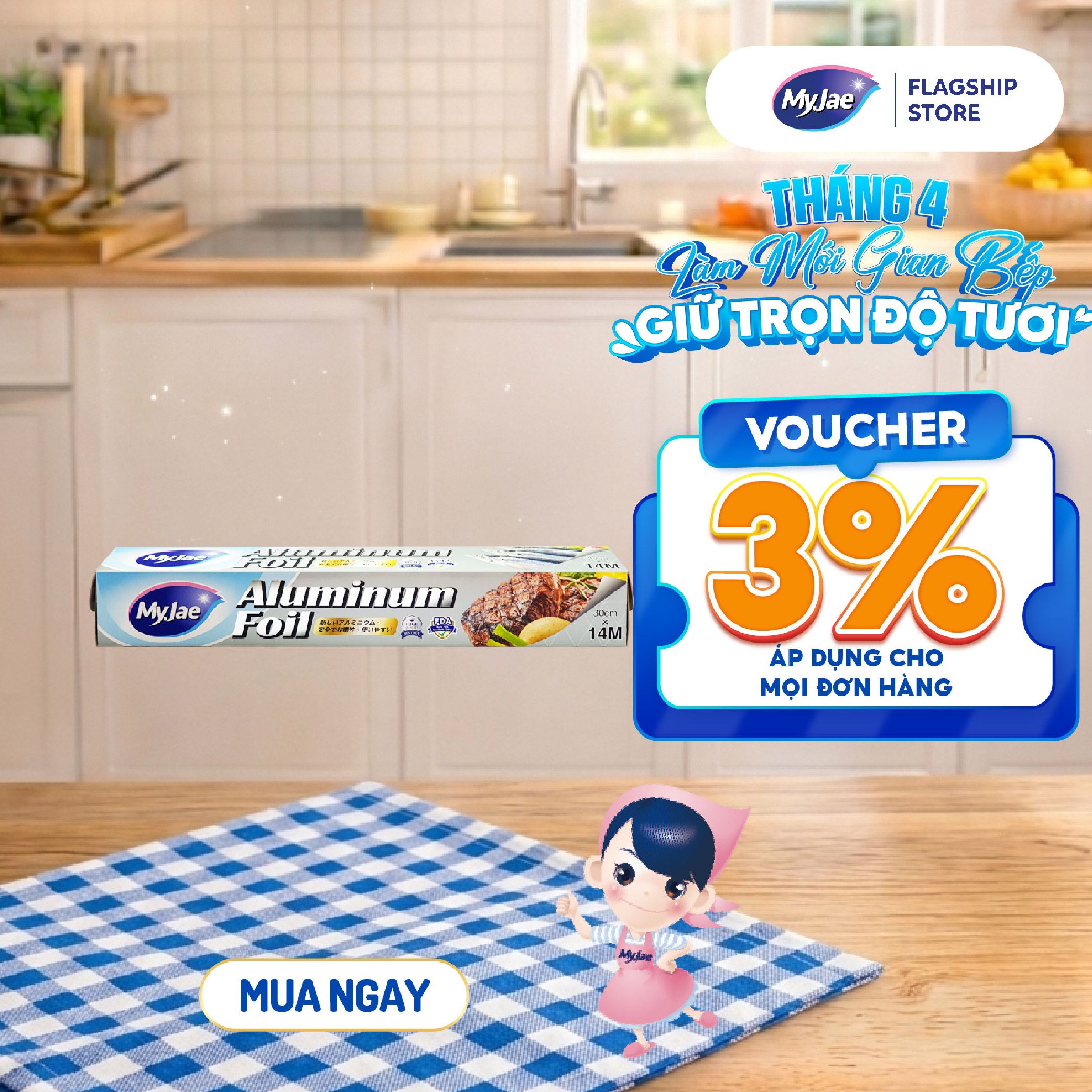 Giấy Bạc Màng Nhôm MyJae Đài Loan Để Bảo Quản, Nướng Thức Ăn, Bọc Thực Phẩm 30cm x 14m
