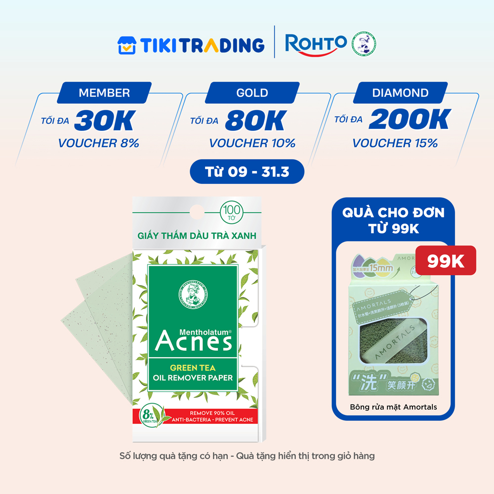 Thông số kỹ thuật Giấy thấm dầu trà xanh Acnes Oil Remover Paper Green Tea 100 tờ