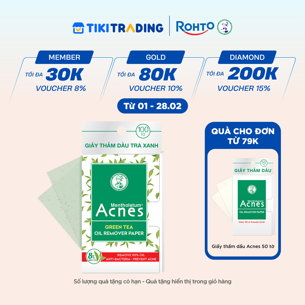 Giấy thấm dầu trà xanh Acnes Green Tea Oil Remover Paper được nghiên cứu và phát triển với trà xanh nguyên chất, giúp thấm hút hơn 90% chất nhờn dư, phù hợp cho mọi loại da kể cả làn da nhạy cảm nhất.