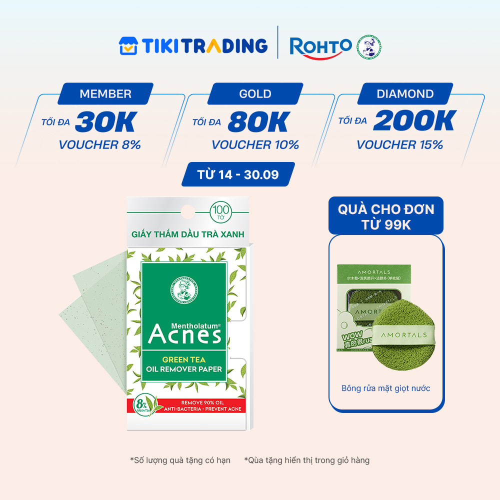 Giấy thấm dầu trà xanh Acnes Oil Remover Paper Green Tea 100 tờ