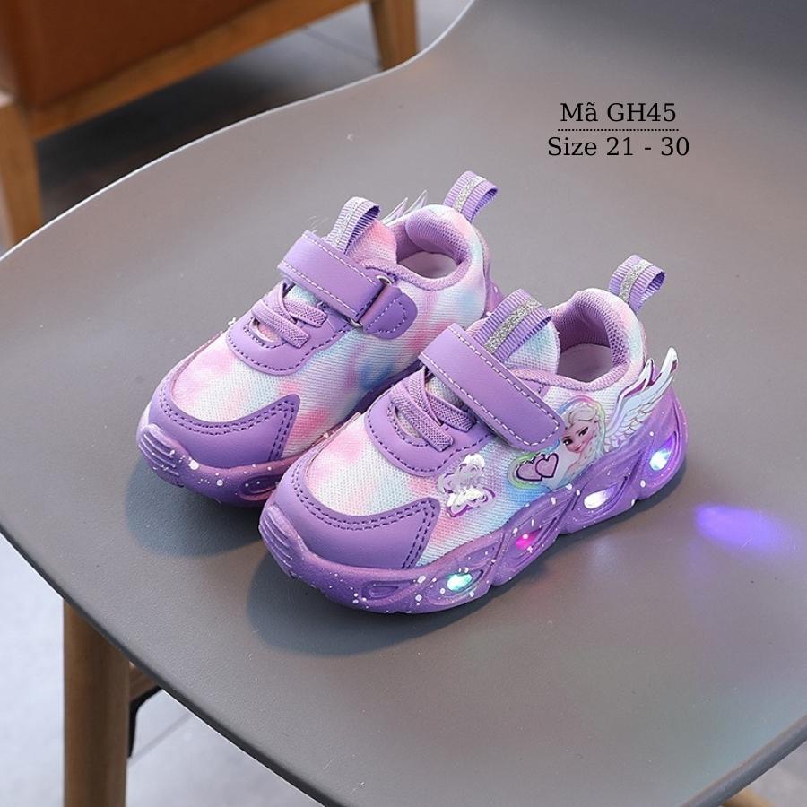 Thông số kỹ thuật Giày thể thao bé gái có đèn LED phát sáng họa tiết Elsa thiên thần xinh xắn và dễ thương 1 2 3 4 5 tuổi phong cách GH45