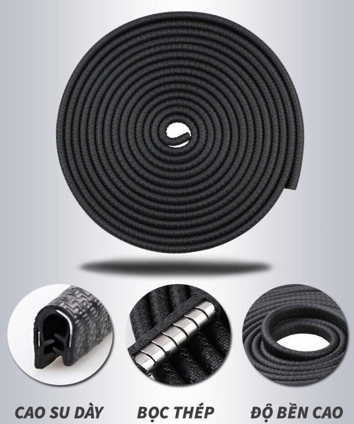 - Gioăng cao su chỉ viền chữ U có gờ kim loại bên trong đảm bảo bám dính chắc chắn trên viền mép cánh cửa xe.