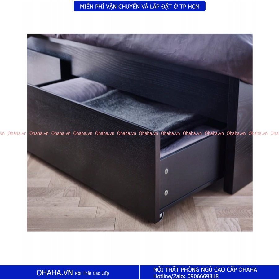 - Chất lượng: Là yếu tố hàng đầu bởi Ohaha hiểu, Gường là nơi gắn bó nhiều nhất với mỗi người. Vì vậy, giường được thiết kế chắc chắn, được sản xuất từ vật liệu gỗ MDF cao cấp đạt tiêu chuẩn xuất khẩu nên an toàn với sức khoẻ, các nét cạnh được chau chút tỉ mỹ không kém phần sang trọng.