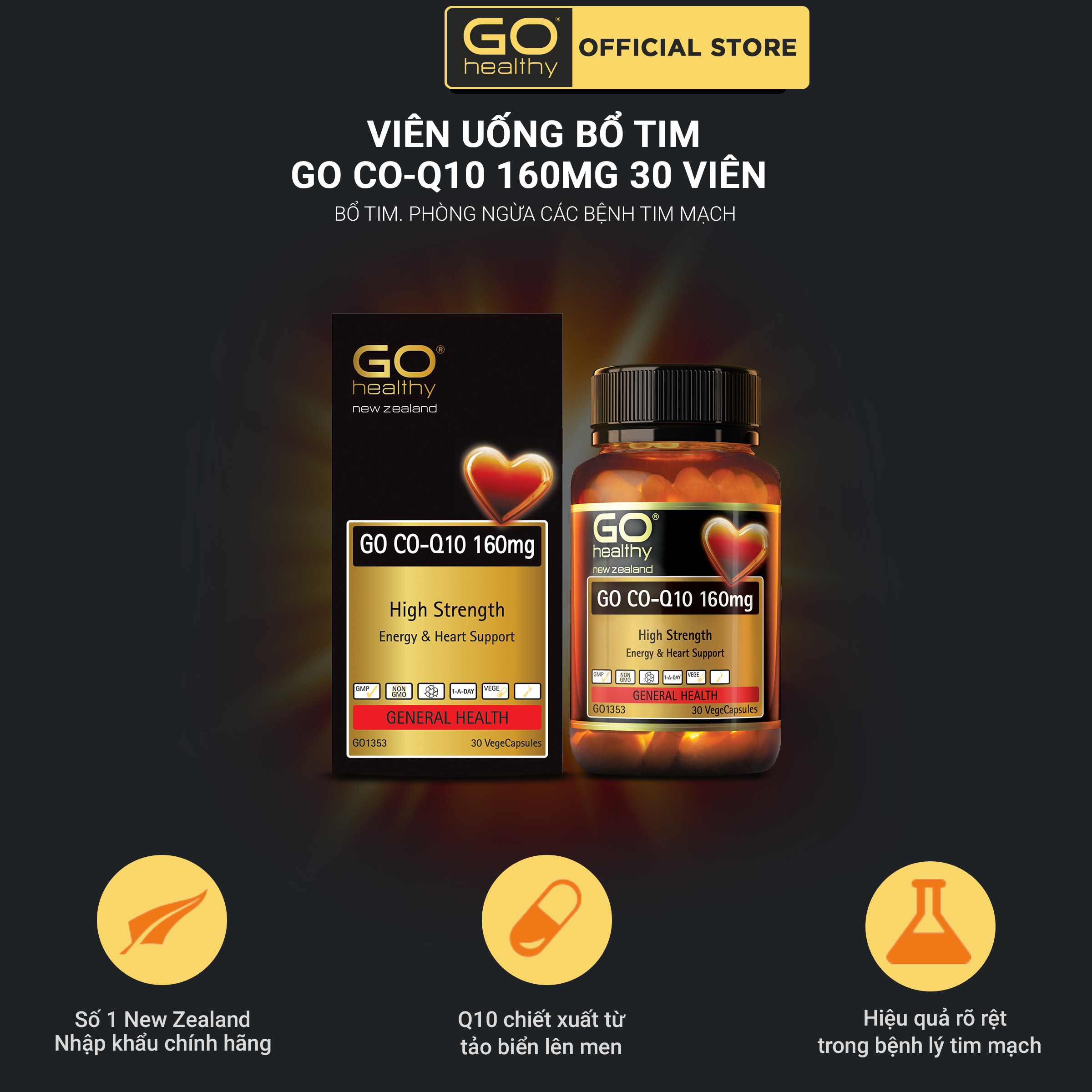 Viên uống bổ tim GO CO Q10 160MG 30 VIÊN là sản phẩm nhập khẩu chính hãng GO Healthy, thương hiệu số 1 New Zealand.