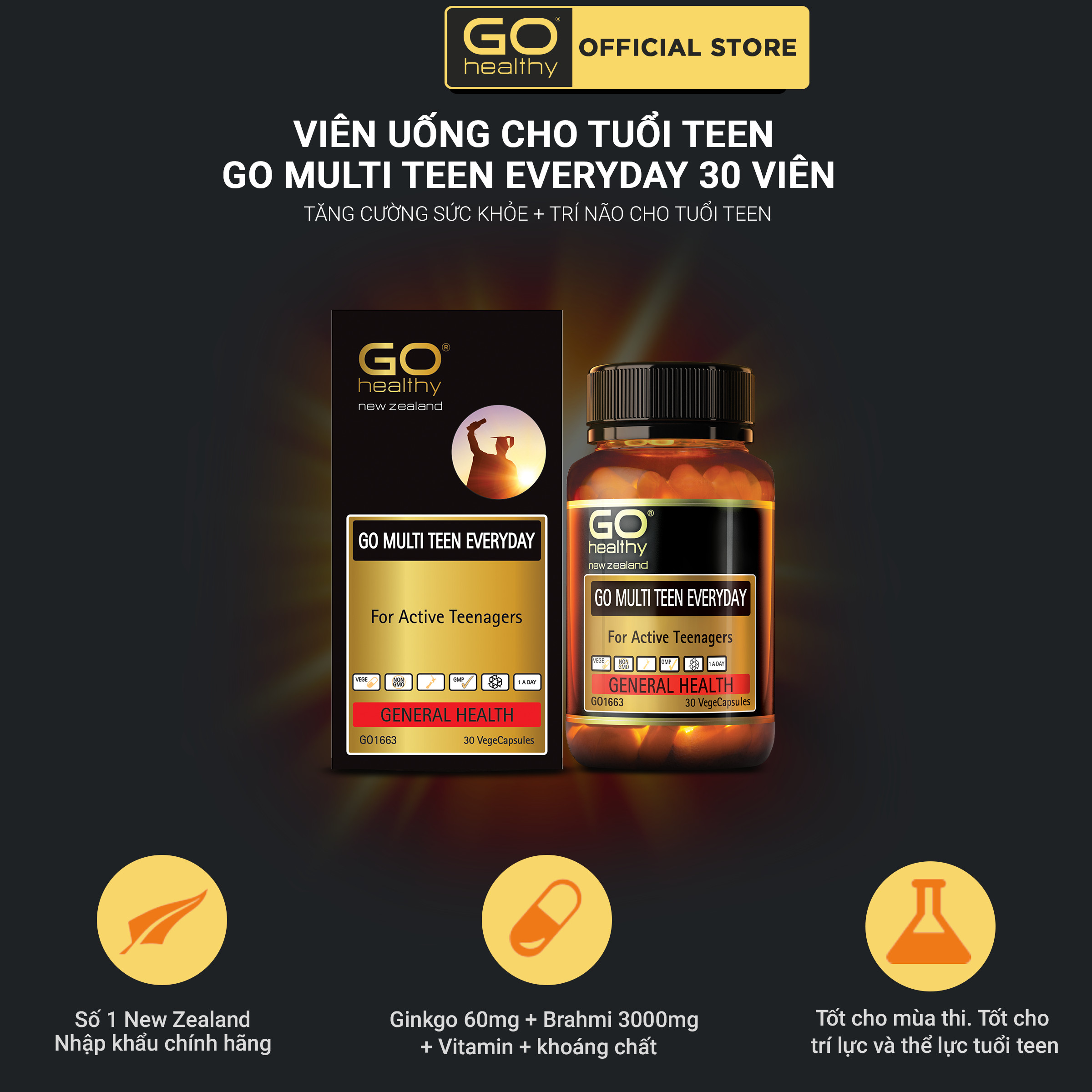 Viên uống cho tuổi teen GO MULTI TEEN EVERYDAY 30 viên là sản phẩm nhập khẩu chính hãng GO Healthy, thương hiệu số 1 New Zealand.