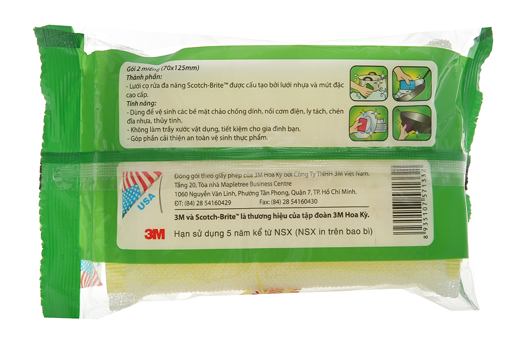 Cọ rửa các vết cháy khét trên nồi chảo nhôm, vỉ nướng, dụng cụ nhà bếp Loại bỏ các lớp sơn cũ, xử lý bề mặt trước khi sơn Xử lý các vết gỉ sắt trên bề mặt kim loại, giúp kim loại trông như mới Cấu tạo bởi lưới nhựa và mút đặc cao cấp theo công nghệ độc quyền của 3M Tăng tốc độ làm sạch nhanh, tiết kiệm thời gian và chi phí Độ đàn hồi và độ bền cao, giúp tiết kiệm gấp 3 lần so với miếng cọ rửa thông thường