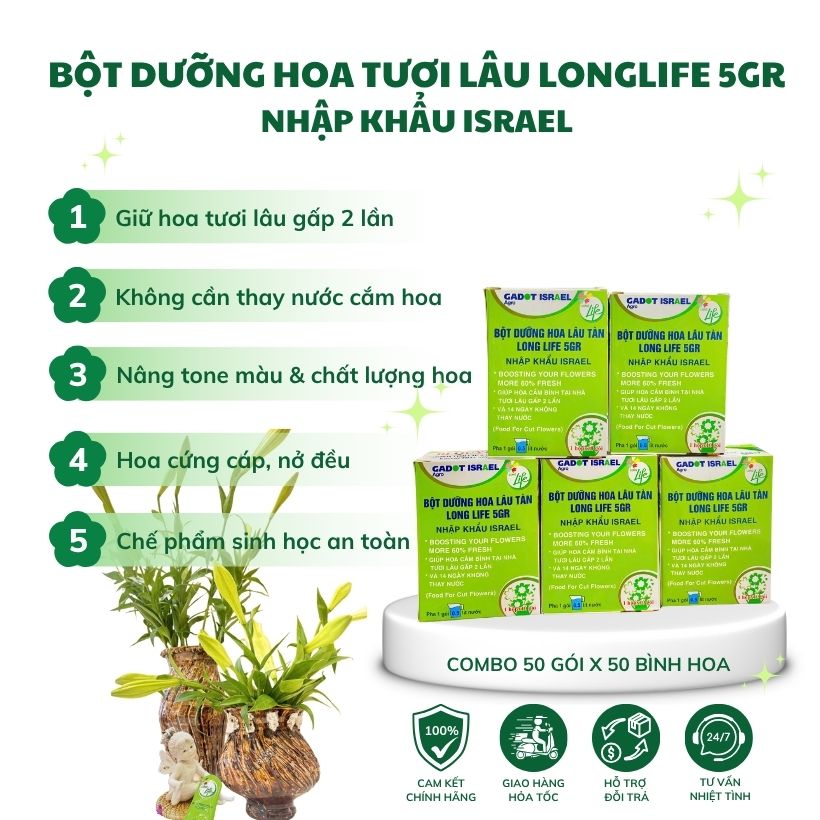 - Bột Cắm Hoa tươi LongLife của Israel giữ Hoa và lá tươi lâu hơn (gấp đôi thời gian bình thường)