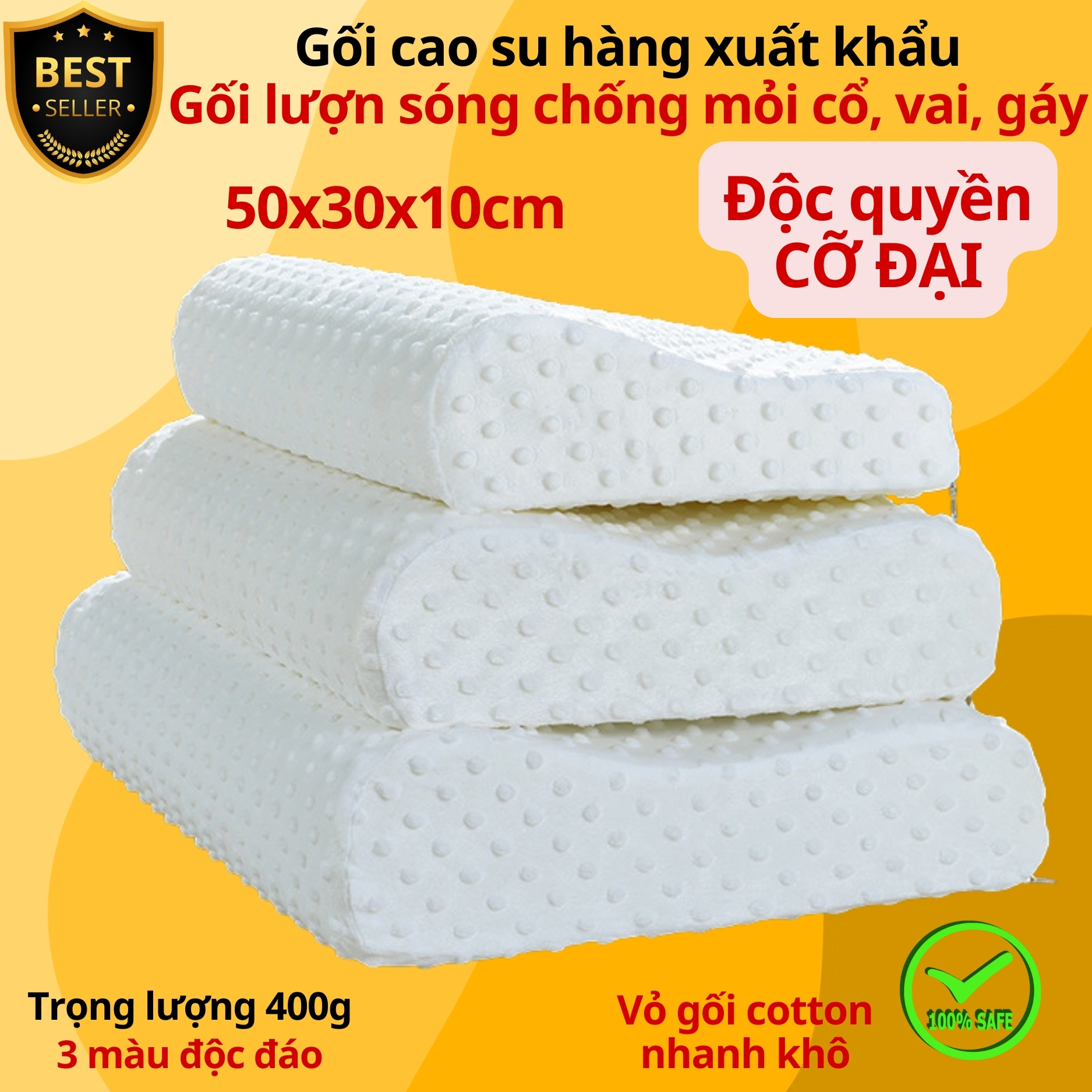 Gối cao su NGƯỜI LỚN ĐỘC QUYỀN cho giấc ngủ sâu chống đau mỏi vai gáy cổ