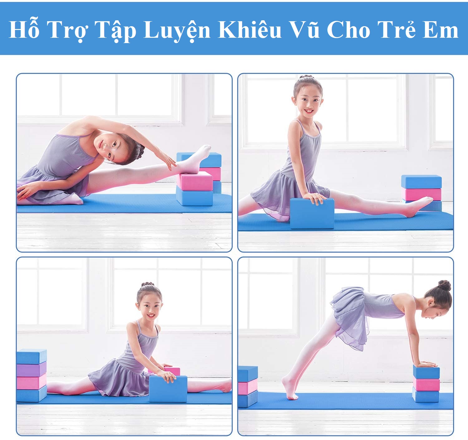 Gối gạch tập yoga giúp tăng thêm chiều cao và cân bằng trong việc tư thế đứng, hoặc được đặt giữa hai đầu gối để hỗ trợ động tác cơ chân.