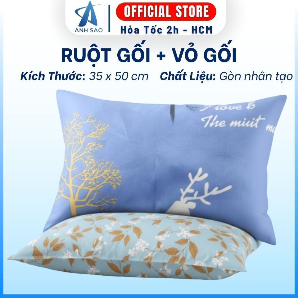Gối nằm gòn/gối hơi cao cấp + vỏ gối đi kèm cùng kích thước 35x50cm - Thương hiệu A ( vui lòng chat với shop để được chọn mẫu)