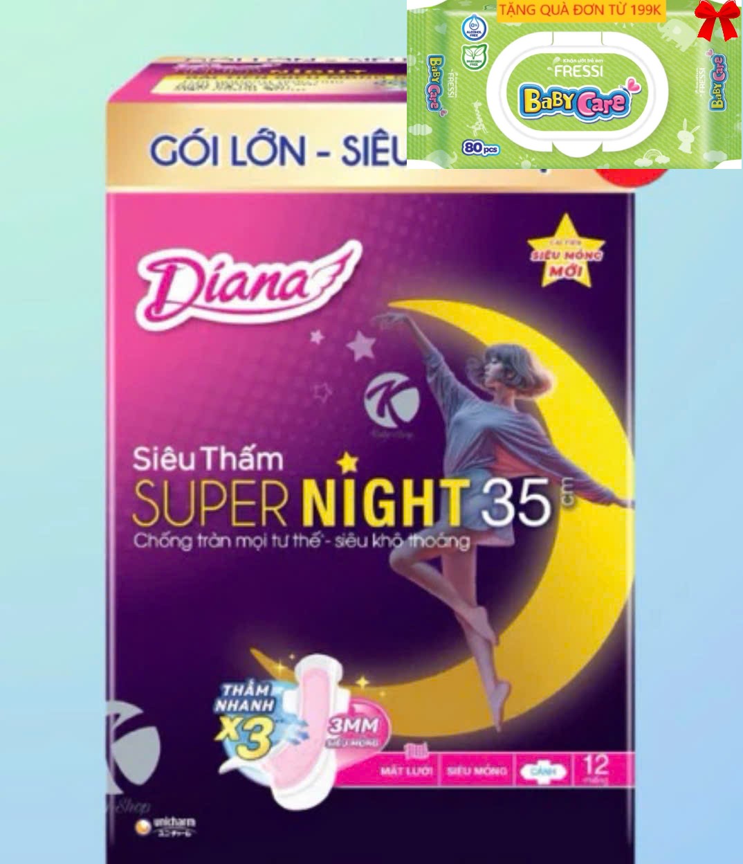 Gói Lớn 12 Miếng | 1 Gói Băng Vệ Sinh Diana Supernight 35cm 12 Miếng/Gói- Date luôn mớiGiá sản phẩm trên Tiki đã bao gồm thuế theo luật hiện hành. Bên cạnh đó, tuỳ vào loại sản phẩm, hình thức và địa chỉ giao hàng mà có thể phát sinh thêm chi phí khác như phí vận chuyển, phụ phí hàng cồng kềnh, thuế nhập khẩu (đối với đơn hàng giao từ nước ngoài có giá trị trên 1 triệu đồng).....
