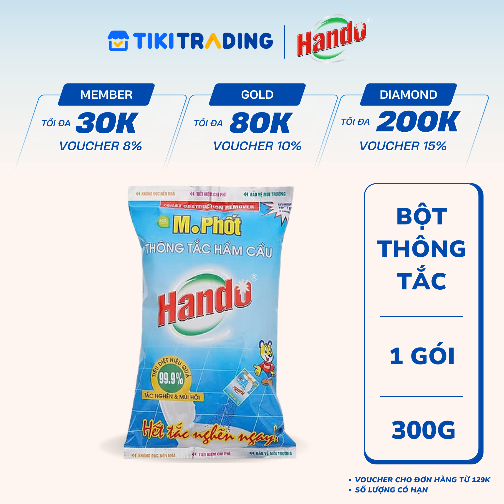 Với công thức vượt trội gồm hàng tỉ vi sinh vật trong mỗi gói M.Phốt sẽ khiến hầm cầu thông sạch chỉ sau 1 ngày mà không cần phải dùng đến xe hút, đục nền nhà...với chi phí lớn và vô cùng mất vệ sinh. Cách dùng: đổ gói bột vào vào hầm cầu giật nước cho trôi xuống, thế là xong. Gói 300g dùng cho bể phốt dung tích trên 3 mét khốiGiá sản phẩm trên Tiki đã bao gồm thuế theo luật hiện hành. Bên cạnh đó, tuỳ vào loại sản phẩm, hình thức và địa chỉ giao hàng mà có thể phát sinh thêm chi phí khác như phí vận chuyển, phụ phí hàng cồng kềnh, thuế nhập khẩu (đối với đơn hàng giao từ nước ngoài có giá trị trên 1 triệu đồng).....
