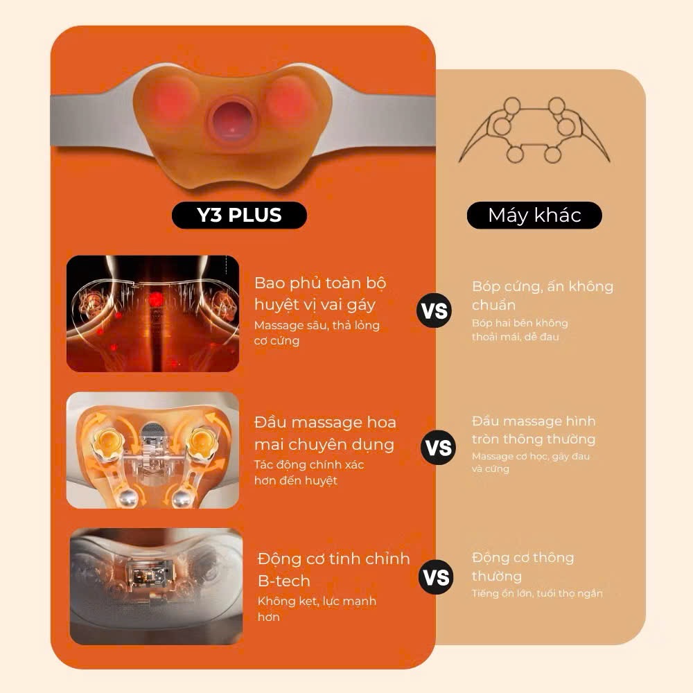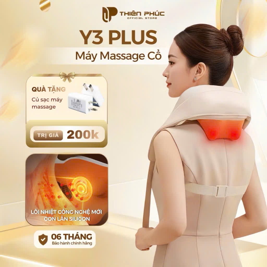 Máy massage cổ vai gáy Y3 Plus là thiết bị chăm sóc cơ thể đa năng, ứng dụng công nghệ massage con lăn hoa mai kết hợp chườm ấm hồng ngoại 40–45°C, giúp giảm nhanh đau nhức, căng cứng cơ vùng cổ, vai, gáy do ngồi lâu, cúi nhiều hoặc vận động nặng. Máy mô phỏng động tác ấn – day – xoa chuyên sâu, hỗ trợ thư giãn cơ bắp, tăng lưu thông máu và cải thiện giấc ngủ hiệu quả.