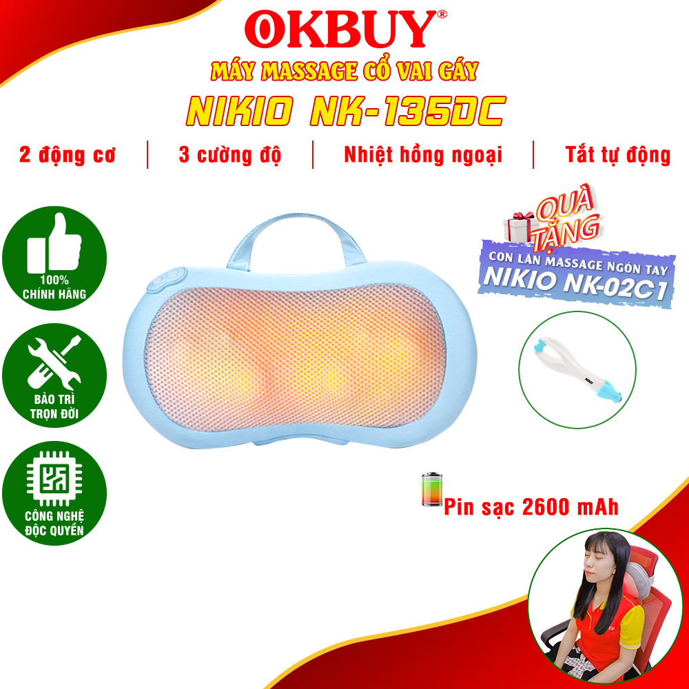 Thông số kỹ thuật Gối Massage Hồng Ngoại, Máy Mát Xa Cổ Vai Gáy, Matxa Toàn Thân Nikio NK-135DC - Công Nghệ Xoa Bóp Chuyên Sâu, Sưởi Ấm Hồng Ngoại - Pin sạc