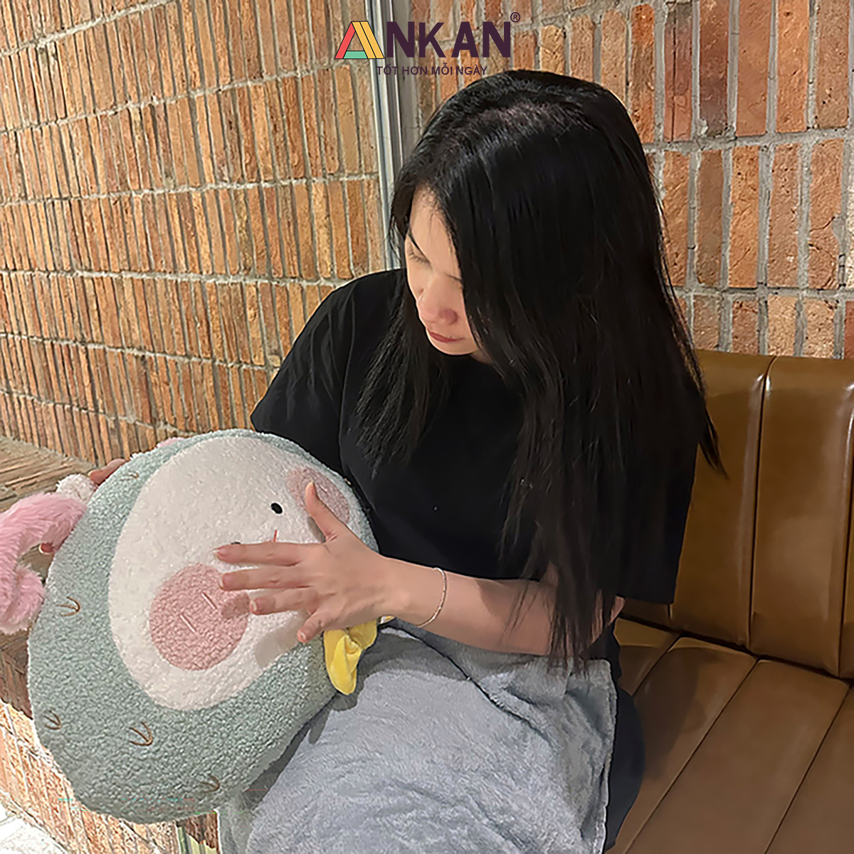 - Cừu Non xanh mint có kích thước to hơn, giúp bạn tựa đầu và tựa lưng dễ dàng hơn.