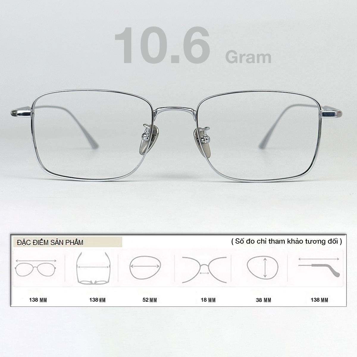 Thông số kính titanium luôn nhắc tới thêm chỉ số trọng lượng rất nhẹ. Giúp cảm giác đeo kính thoải mái nhất, không bị hằn vết lên mũi.
