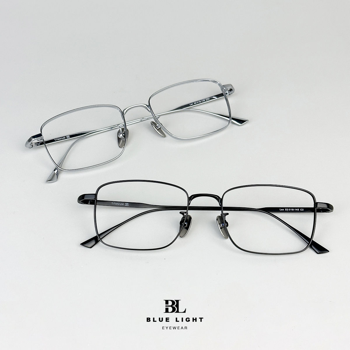 Thông số kỹ thuật Gọng Kính Cận Giả Cận Nam Nữ Cao Cấp Titanium BLUE LIGHT, Mắt Chữ Nhật Nhỏ Dày Dặn, Nhẹ Dẻo Bạc, Đen